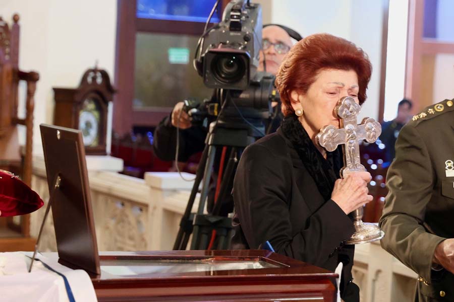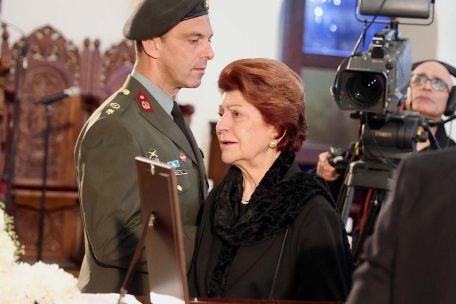 Κατά την άφιξη της σορού στον ναό, η φιλαρμονική της Αστυνομίας παιάνιζε πένθιμα εμβατήρια, ενώ στρατιωτικό άγημα απέδωσε τιμές. Στη συνέχεια, έγινε ανάκρουση του Εθνικού Ύμνου.