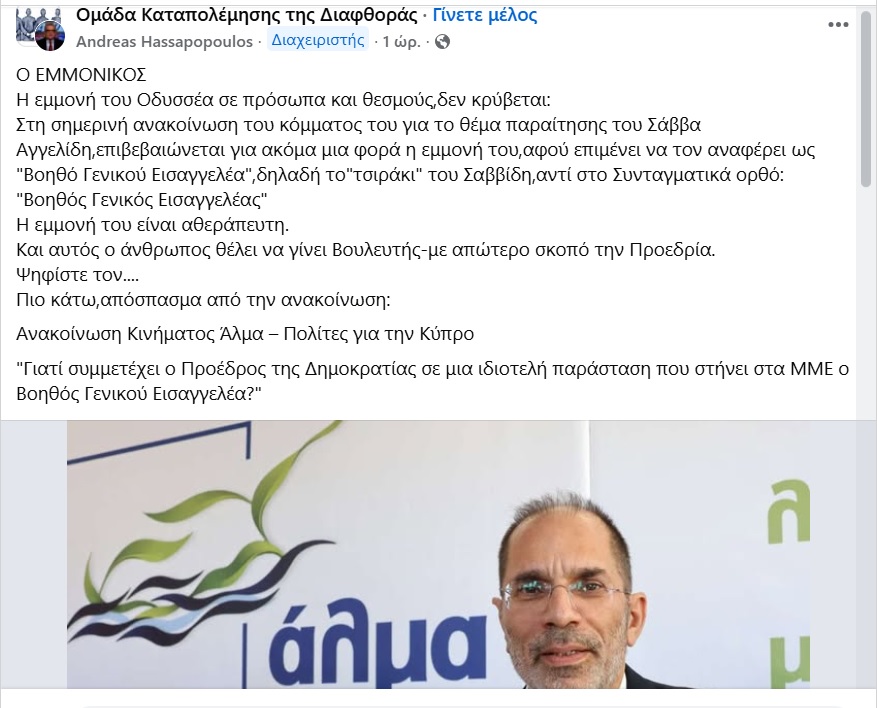 Σε σημερινή του ανάρτηση στη σελίδα "Ομάδα Καταπολέμησης της Διαφθοράς", ο άλλοτε στενός συνεργάτης του κύριου Μιχαηλίδη, του επιτίθεται χαρακτηρίζοντας τον ΕΜΜΟΝΙΚΟ.
