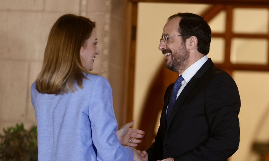 Την Προέδρου του Ευρωπαϊκού Κοινοβουλίου, Ρομπέρτα Μέτσολα υποδέχθηκε το απόγευμα της Δευτέρας (01/12) στο Προεδρικό Μέγαρο ο Πρόεδρος της Κυπριακής Δημοκρατίας, στο πλαίσιο της Διάσκεψης των Προέδρων του Ευρωπαϊκού Κοινοβουλίου.