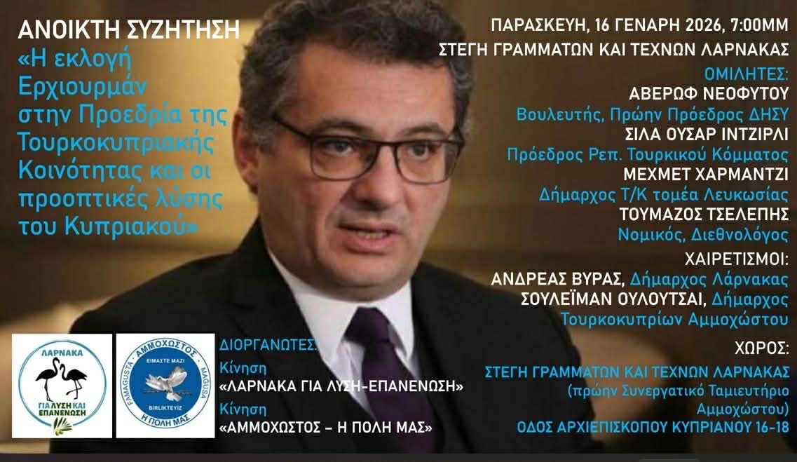 • Ενδεχομένως, να έχει τις πληροφορίες του η ΦΥΞ (καμία συνωνυμία με την μπύρα) ότι επίκειται σχέδιο λύσης του Κυπριακού, όπως το περιέγραψε στην Βουλή με δυο τομείς (κράτη το λένε οι άγριοι ΟΧΙάδες) και μια κεντρική κυβέρνηση, χωρίς πολλές εξουσίες. Ήτοι ΧΑΛΑΡΗ ΟΜΟΣΠΟΝΔΙΑ. Προς τούτο θα πρέπει να καλλιεργήσει την ιδέα του, εξ ου και αρχίζει κύκλο επαφών- συσκέψεων, αναλύσεων, τοποθετήσεων, περί της ΧΑΛ.Ο. Έτσι την ερχόμενη Παρασκευή σε ανοικτή συζήτηση που διοργανώνει η πλατφόρμα «ΛΑΡΝΑΚΑ- ΓΙΑ ΛΥΣΗ ΚΑΙ ΕΠΑΝΕΝΩΣΗ» (μάλλον αριστεροί του ΒΥΡΑ) και η ΑΜΜΟΧΩΣΤΟΣ ΓΙΑ ΤΗΝ ΚΥΠΡΟ (συνιστώσα του ΒΟΛΤ), θα είναι ο κύριος ομιλητής με θέμα « η εκλογή Ερχιουρμάν στην Προεδρία της Τ/Κ κοινότητας και οι προοπτικές λύσης του Κυπριακού». Πέραν του Φούλλη, θα μιλήσουν η αριστερή Πρόεδρος του κυβερνώντος Ρεπουμπλικανικού ΣΙΛΑΡ ΟΥΣΑΡ ΙΝΤΖΙΡΛΙ, ο ΜΕΧΜΕΤ ΧΑΡΑΜΑΝΤΖΙ που αποκαλείται Δήμαρχος Τ/Κ τομέα ( ουάου Φούλλη, μου έλυσες το Κυπριακό με τα λόγια…) και ο γκουρού του ΑΚΕΛ στο Κυπριακό ΤΟΥΜΑΖΟΣ ΤΣΕΛΕΠΗΣ. Χαιρετισμούς θα απευθύνει ο ΑΝΤΡΕΑΣ ΒΥΡΑΣ Δήμαρχος Λάρνακας- και προσέξτε παρακαλώ- ο Δήμαρχος Τ/Κ Αμμοχώστου. Ουάου. Η ΦΩΛΙΑ του ΝΑΙΝΑΙΚΙΣΤΑΝ.
