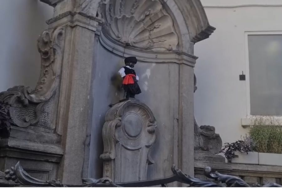 Πρόκειται για το Μανεκέν Πις (Manneken Pis) που φόρεσε την παραδοσιακή κυπριακή ενδυμασία, ραμμένη στα μέτρα του.