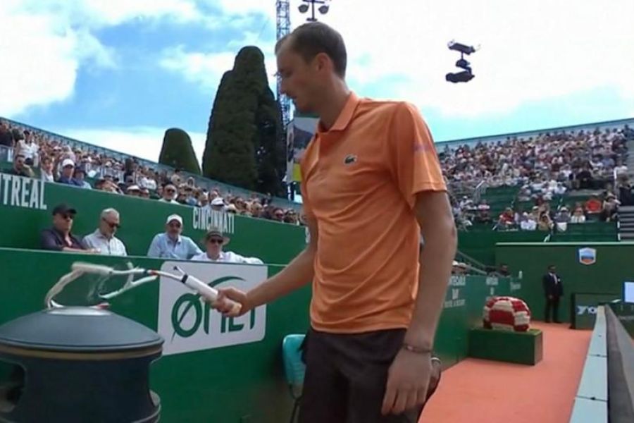 Η πίεση και η εξέλιξη του σκορ έφεραν και το ξέσπασμα. Μετά το τέλος του πρώτου σετ και στα μέσα του δεύτερου, ο Μεντβέντεφ «εξερράγη», πετώντας τη ρακέτα του με δύναμη προς τον φράχτη και στη συνέχεια διαλύοντάς την στο έδαφος, σε ένα σκηνικό έντονου εκνευρισμού.