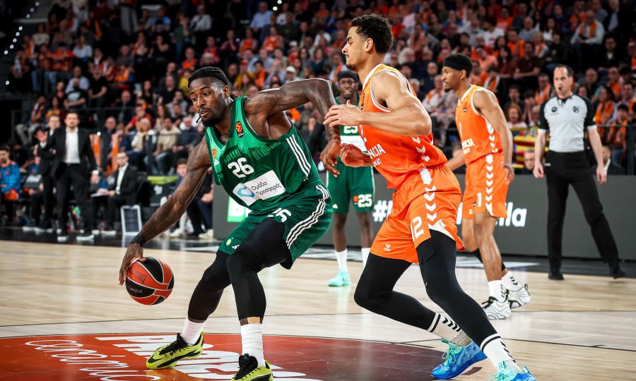 Το πρώτο καλάθι του αγώνα ήρθε με φόλοου του Λεσόρ (0-2), ενώ ο Μπαντιό με τρίποντο έγραψε το 3-2. Ο Τόμπσον ευστόχησε και αυτός από μακριά σε γρήγορο τέμπο (6-2), πριν ο Πραντίγια πάει στο καλάθι και γράψει το 8-2 με λέι απ. Ο Χουάντσο έδωσε λύση στον Παναθηναϊκό με φόλοου κάρφωμα (8-4), με τον Λεσόρ να φέρνει το ματς στο καλάθι (8-6). Ο Ρόιβερς πέτυχε το τρίτο τρίποντο της Βαλένθια (11-6), με τον Όσμαν να μειώνει από τη γραμμή των βολών σε 11-8. Ο Ρόιβερς μάζεψε το επιθετικό ριμπάουντ και σκόραρε από κοντά (13-8), πριν βάλει δύσκολο καλάθι για το 15-8. Ο Σλούκας έσπασε το «ρόδι» με το πρώτο τρίποντο του Παναθηναϊκού (15-11), με τον Ναν να πετυχαίνει το πρώτο του καλάθι για το 17-13. Ο Φαρίντ πήγε στη γραμμή και έφερε τους φιλοξενούμενους σε απόσταση βολής (17-15), όμως η Βαλένθια έβαλε… πεντάποντο με μακρινό σουτ του Μπαντιό και βολές του Κοστέλο για το 22-15. Τόμπσον και Χέιζ-Ντέιβις αντάλλαξαν τρίποντα (25-20), ενώ ένα γκολ φαουλ του Σλούκα διαμόρφωσε το 27-23 του πρώτου δεκαλέπτου.