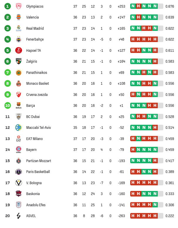 Την ίδια στιγμή, ο Ολυμπιακός βρίσκεται σε εντελώς διαφορετική κατάσταση, καθώς με τη νίκη του επί της Χάποελ εξασφάλισε τουλάχιστον τη δεύτερη θέση στη βαθμολογία.