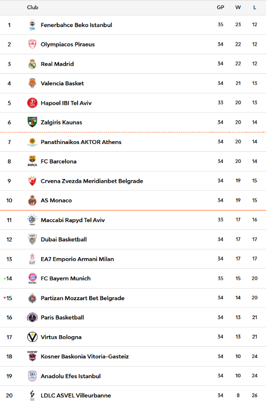 Υπενθυμίζουμε ότι η ομάδα του Γιώργου Μπαρτζώκα κυριαρχεί σε πιθανή ισοβαθμία με την τουρκική ομάδα, καθώς τη νίκησε με μεγαλύτερη διαφορά σε σχέση με αυτή που ηττήθηκε στην Κωνσταντινούπολη. Βέβαια, υπάρχει στο «κόλπο» και η Ρεάλ Μαδρίτης, που επίσης έχει ρεκόρ 22-12, αντιμετωπίζοντας την Μπασκόνια στη Βιτόρια.