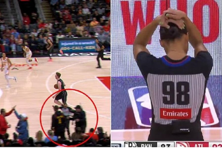 Ολιγόλεπτη διακοπή είχε στην τέταρτη περίοδο η αναμέτρηση των Χοκς με τους Νετς, όταν η διαιτητής ΣαΡέι Μίτσελ συγκρούστηκε με κάμεραμαν.