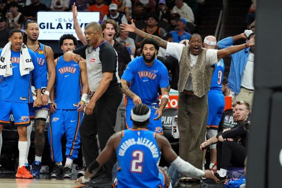Οι πρωταθλητές του NBA σφράγισαν πρόκριση στον 2ο γύρο στη Δύση, καθώς, επικρατώντας 131-122, έκανε το 4-0 στη σειρά. Ο Γκίλτζιους-Αλεξάντερ ήταν πρώτος σκόρερ με 31 πόντους, 8 ασίστ σε 38 λεπτά συμμετοχής. Ο Χόλμγκριν με 24 πόντους και 12 ριμπάουντ ήταν άξιος συμπαραστάτης. Από την πλευρά των ηττημένων, ο Μπούκερ είχε 24 με 6 ασίστ, αλλά και 6 λάθη, ενώ ο Μπρουκς σημείωσε 23. Στην επόμενη οι Θάντερ θα παίξουν με τον νικητή του ζευγαριού Λέικερς-Χούστον (3-1).