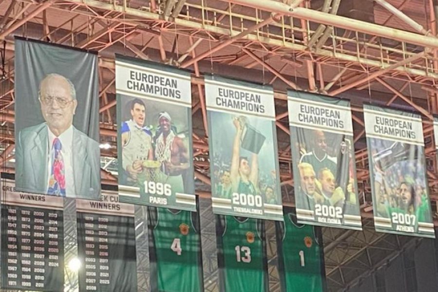 Όπως έγινε γνωστό λοιπόν, από το ημίχρονο κιόλας του αγώνα στο ΣΕΦ ελήφθη η απόφαση να κατέβει από την οροφή του σταδίου το λάβαρο με τη μορφή του παλαίμαχου άσου της ομάδας και νυν προέδρου της Ευρωλίγκας.