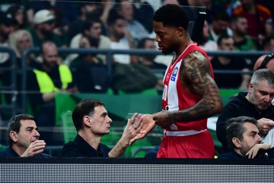 Ο Αμερικανός σέντερ των «ερυθρόλευκων» αποχώρησε από το glass floor με προορισμό τα αποδυτήρια λίγο πριν το φινάλε του αγώνα, αντιμετωπίζοντας ενοχλήσεις στη γάμπα του αριστερού του ποδιού.