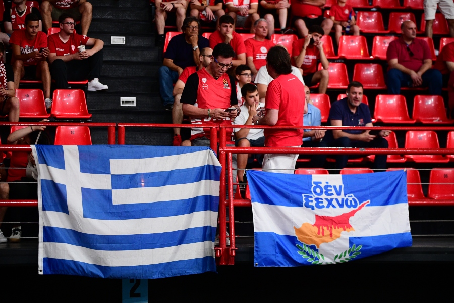 Από νωρίς, οι εξέδρες του γηπέδου γέμισαν από φιλάθλους των «ερυθρόλευκων», οι οποίοι ανάρτησαν πλήθος ελληνικών σημαιών. Ανάμεσά τους ξεχωρίζουν σημαίες που απεικονίζουν τον χάρτη της Κύπρου και φέρουν το σύνθημα «Δεν ξεχνώ».