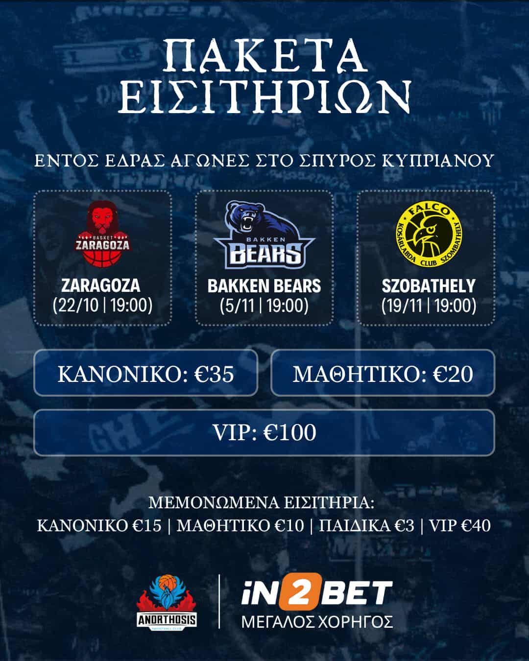 Η καλαθοσφαιρική Ανόρθωση ανακοίνωσε τα πακέτα εισιτηρίων για τους ευρωπαϊκούς της αγώνες.