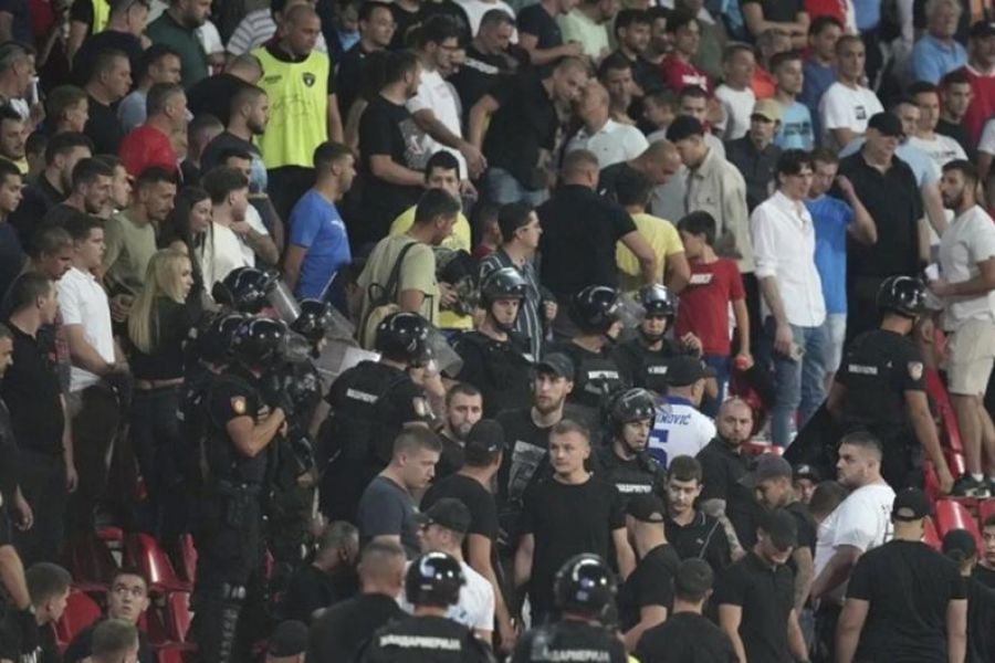 «Εμφύλιος» μεταξύ Σέρβων φιλάθλων στο ματς κόντρα στην Αγγλία στο Βελιγράδι για τα προκριματικά του Παγκοσμίου Κυπέλλου του 2026. Παρευρισκόμενοι οπαδοί στο «Ράικο Μίτιτς», μισοί πολέμιοι και μισοί υποστηρικτές του προέδρου της πρώην γιουγκοσλαβικής χώρας, Αλεξάνταρ Βούτσιτς, πιάστηκαν στα χέρια στη διάρκεια της αναμέτρησης.