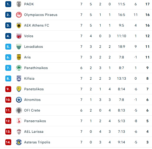 Σημαντικό όφελος και για τον Βόλο, καθώς με τη νίκη με 2-1 επί του Πανσερραϊκού στο Πανθεσσαλικό, με λυτρωτή τον Λάμπρου στο 90’. Η ομάδα του Φεράντο βρέθηκε στην 4η θέση με 12 βαθμούς, προσπερνώντας τον Λεβαδειακό (2-2 με τον Ατρόμητο).