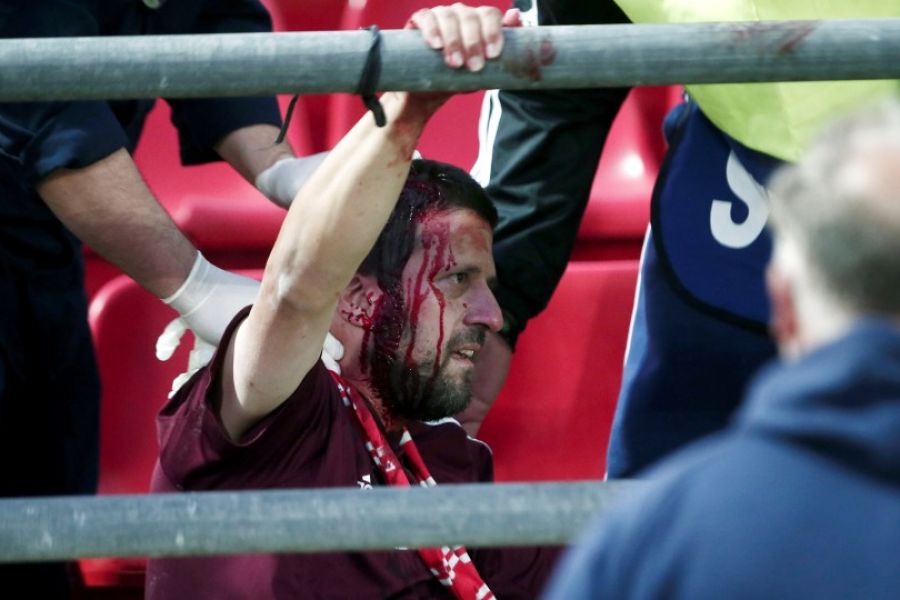 Λίγο μετά το 83’ (κι ενώ η ομάδα U-19 των Βαυαρών προηγούταν 4-0 της αντίστοιχης των «ερυθρόλευκων») περίπου 30 κουκουλοφόροι θέλησαν να κινηθούν προς οπαδούς των φιλοξενούμενων που βρίσκονταν στην εξέδρα.