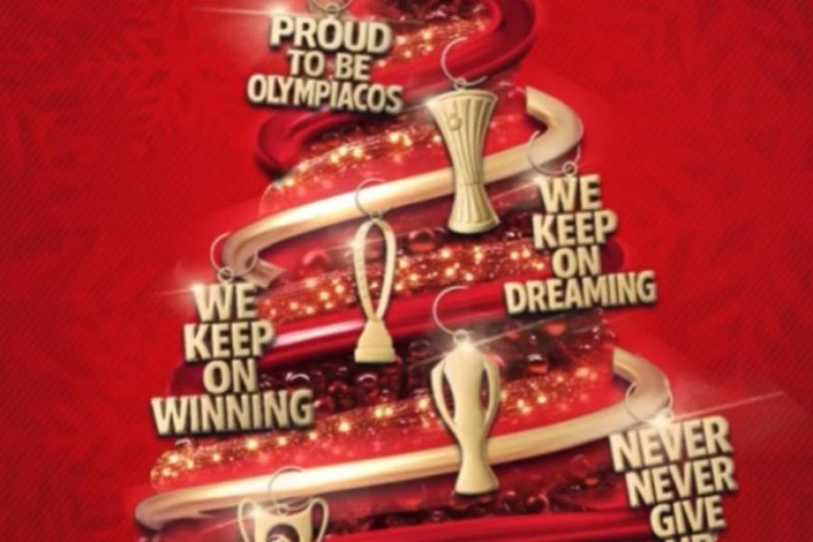 Με ένα μήνυμα στα social media, οι Πειραιώτες ευχήθηκαν στον κόσμο για το νέο έτος, μέσω ενός «ερυθρόλευκου» δέντρου που είχε πάνω τους τις κούπες των πρωταθλητών Ελλάδας.