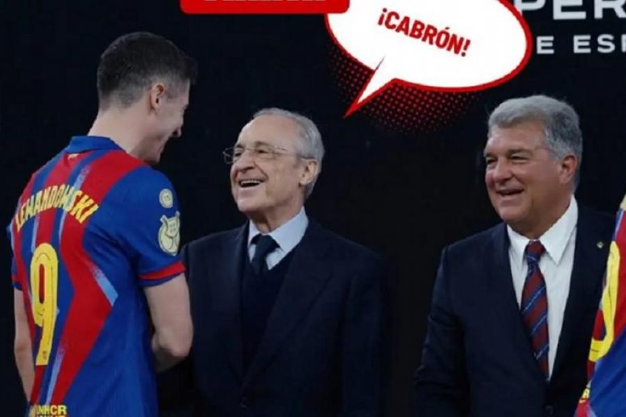 Ο πρόεδρος της «βασίλισσας», δίπλα από τον ομόλογό του των «μπλαουγκράνα» Ζοάν Λαπόρτα, συνεχάρη δια χειραψίας έναν-έναν τους παίκτες των αντιπάλων. Όταν αντίκρισε τον Ρόμπερτ Λεβαντόφσκι είχε μια απίθανη αντίδραση. «Μπάσταρδε», είπε με ένα ελαφρύ μειδίαμα ο Πέρεθ στον Πολωνό φορ, ο οποίος αντέδρασε με χαμόγελο στην ατάκα του ισχυρού άνδρα της Ρεάλ, που ουσιαστικά αναγνώρισε την αξία του.