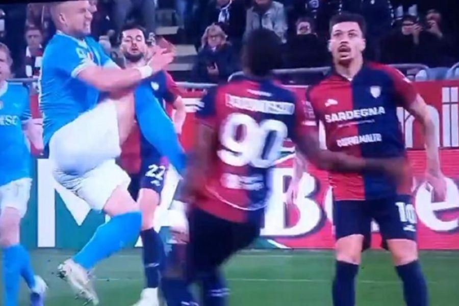 Ο τρόπος που χτυπάει με… καρατιά τον αντίπαλό του σε φάση που ναι μεν παίρνει την μπάλα σηκώνοντας το πόδι, αλλά είναι ξεκάθαρα επικίνδυνο παίξιμο, όφειλε να έχει τιμωρηθεί με κόκκινη κάρτα. Αλλά γι’ ακόμα μια φορά στην Ιταλία, κάπου χάθηκε η ορθή εφαρμογή των κανονισμών.