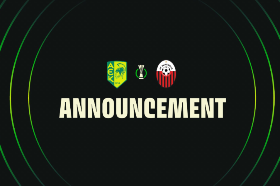 H AEK LARNACA FC LTD ενημερώνει για το πρόγραμμα διασκέψεων και προπονήσεων για τον αγώνα της 6ης αγωνιστικής της League Phase του UEFA Conference League με αντίπαλο την KF Shkëndija (Πέμπτη 18/12, 22:00).