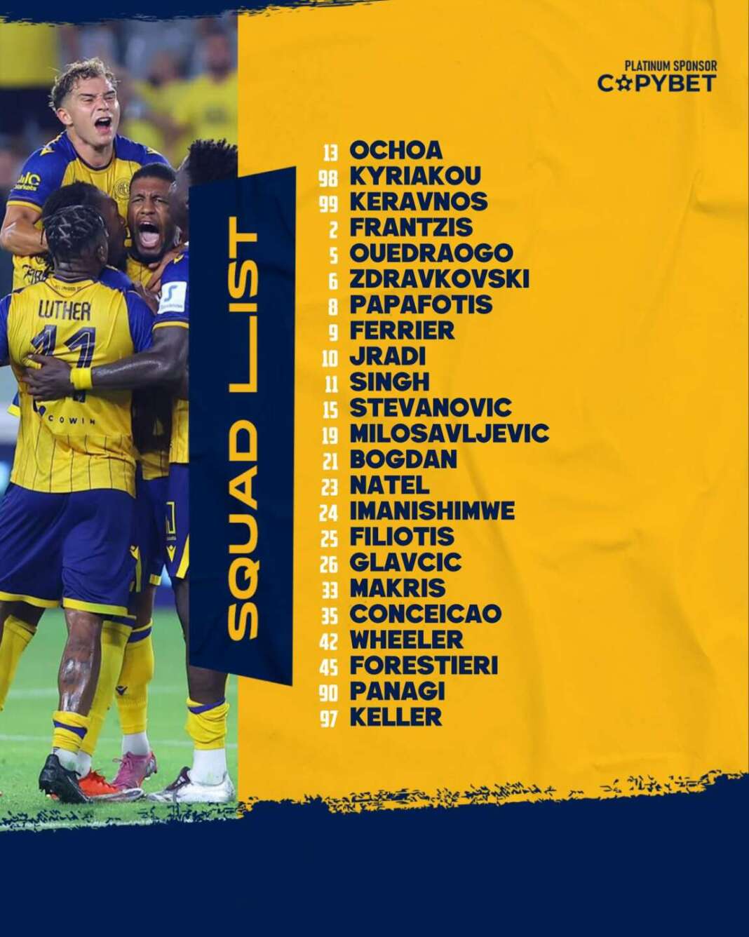 Εκτός αποστολής έμειναν οι Τομάλα, Ζόκε, Χριστοδούλου, Παναγιώτου και Νεοφύτου.