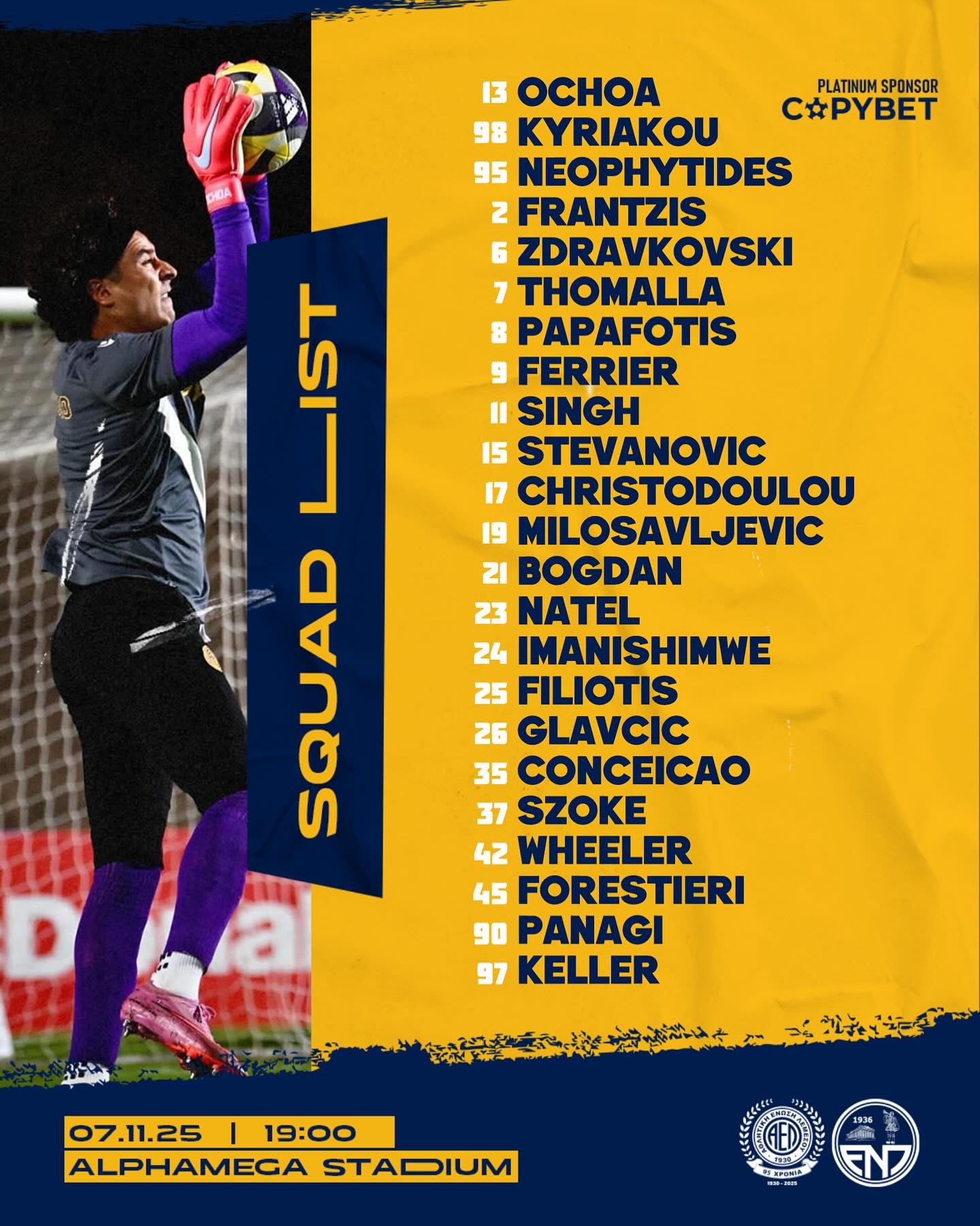 Εκτός αποστολής έμειναν οι Ζράντι, Μακρής, Ουεντραόγκο, Κεραυνός και Νεοφύτου, ενώ την ομάδα θα ακολουθήσει ο Γκλάβσιτς.