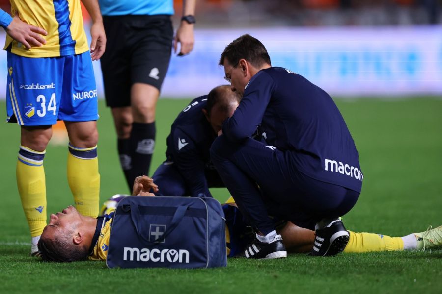 Ο επιθετικός του ΑΠΟΕΛ τραυματίστηκε σε μια διεκδίκηση που είχε με αντίπαλο ποδοσφαιριστή, κατά την οποία έπεσε άτσαλα στο έδαφος.