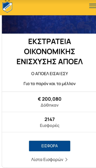 Κάτι παραπάνω από 2 μέρες έχουν πε΄ρασει από την λειτουργία της καμπάνιας οικονομικής ενίσχυσης του ΑΠΟΕΛ.
