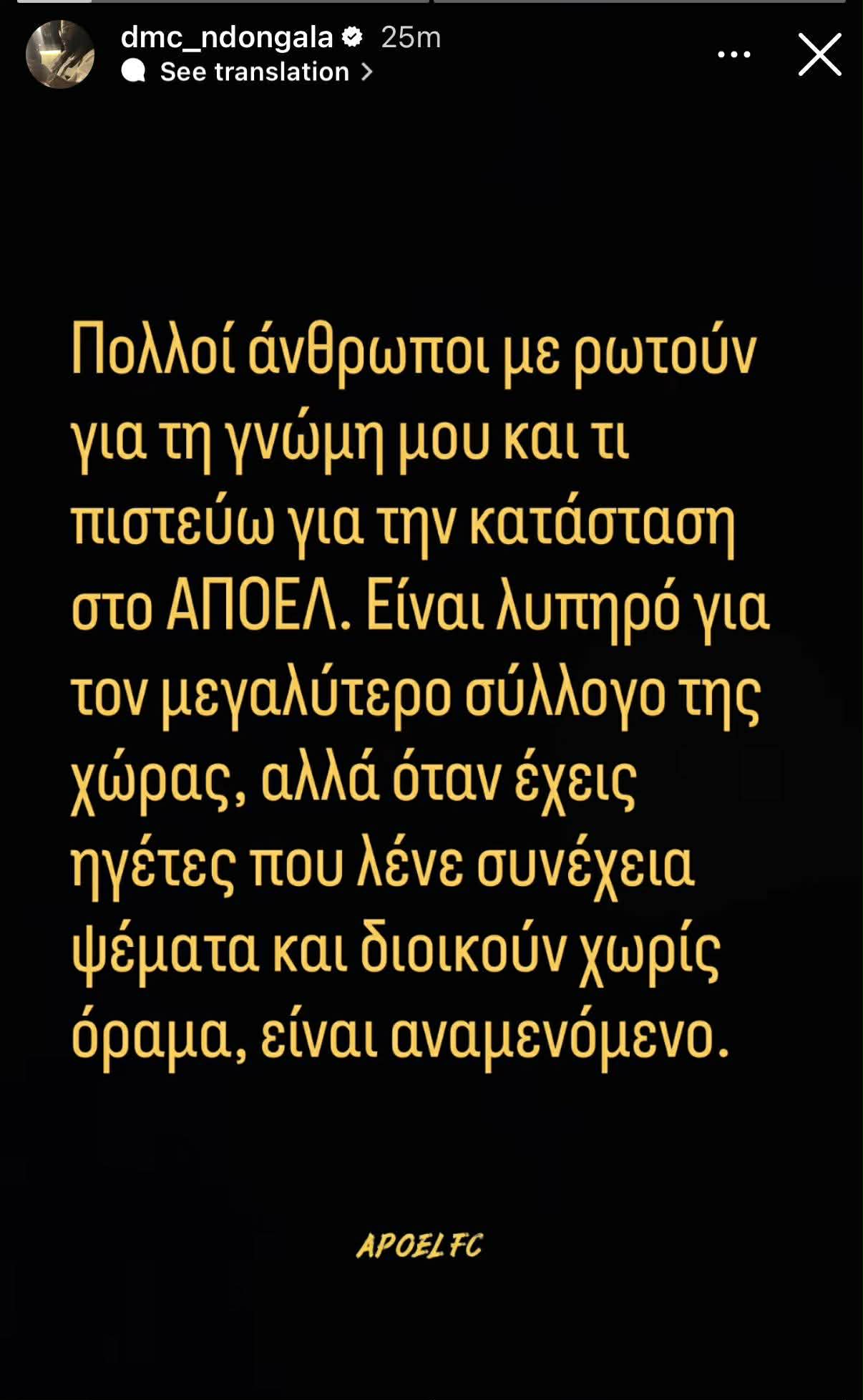 Ανάρτηση από τον Ντιμερσί Εντονγκαλά για όλα όσα συμβαίνουν στο ΑΠΟΕΛ.