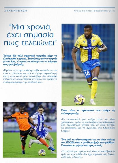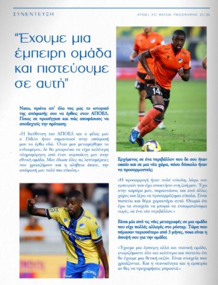 Συνέντευξη στο επίσημο περιοδικό αγώνα του ΑΠΟΕΛ ενόψει της αναμέτρησης με τον Άρη (7/12, 17:00) έχει παραχωρήσει ο αμυντικός της ομάδαας, Νανού.