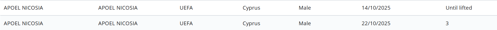Εξέλιξη προκύπτει στον ΑΠΟΕΛ, μιας και στο site της FIFA έχει προσθεθεί άλλο ένα εμπάργκο μεταγραφών.