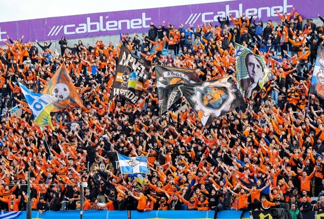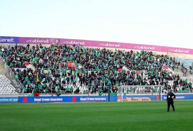Με γεμάτες κερκίδες διεξάγεται το ντέρμπι αιωνίων ανάμεσα σε ΑΠΟΕΛ και Ομόνοια.