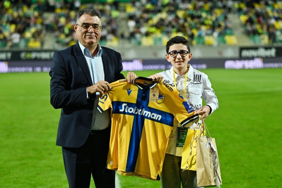 Στο ημίχρονο του ντέρμπι στην Αρένα, ΑΕΚ και ΑΠΟΕΛ τίμησαν τον μικρό φίλαθλο της ΑΕΚ Αθηνών, Μιχάλη Πάνου ο οποίος νίκησε τον καρκίνο.