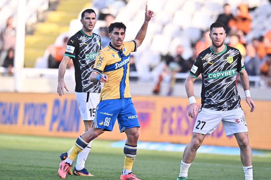 Στο 45ο λεπτό ο Νικόλας Κούτσακος έγραψε το 1-0 για το ΑΠΟΕΛ κόντρα στην ΑΕΚ, όμως οι Λαρνακείς απάντησαν με Καμπρέρα στο 45+4'.