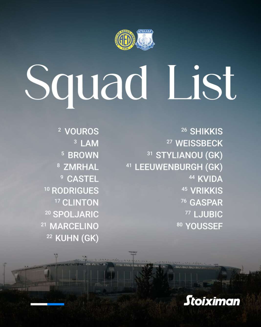 Δεν υπολογίζονται επίσης Μαλεκκίδης, Μάρκες, Τόμας.