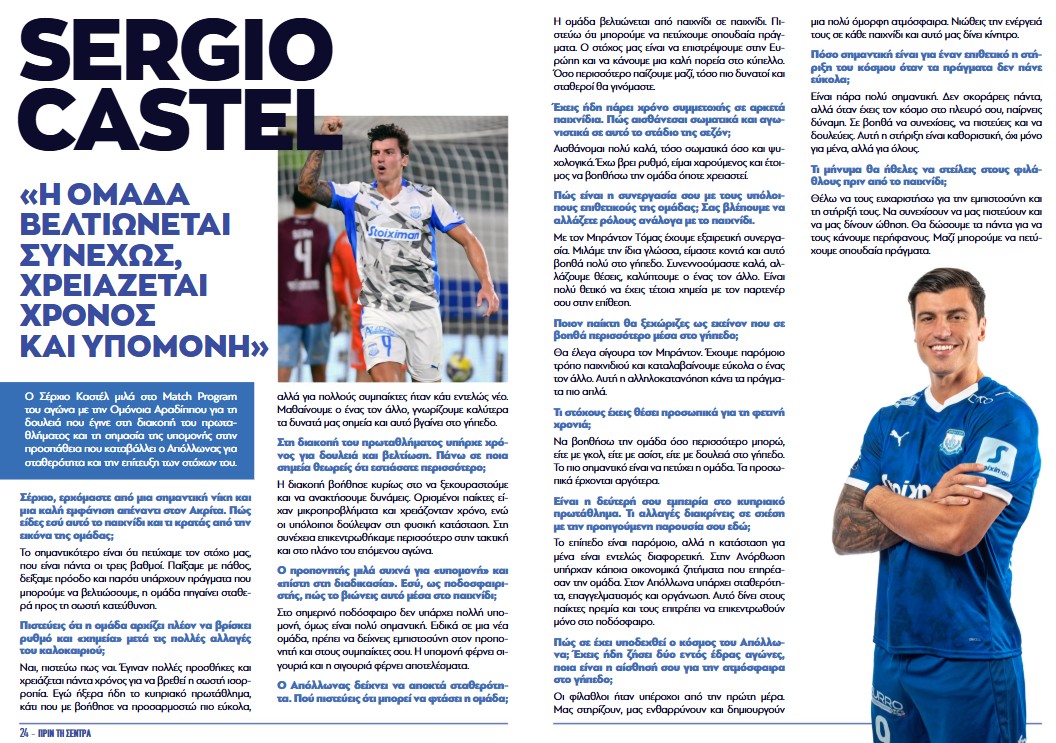 18 ΟΚΤΩΒΡΙΟΥ 2025 - 11:39 Ο Σέργιο Καστέλ μίλησε στο Match Program του αγώνα του Απόλλωνα με την Ομόνοια Αραδίππου. Αναλυτικά τα όσα είπε πιο κάτω: Ακολουθήστε το 24sports.com.cyστο Google News