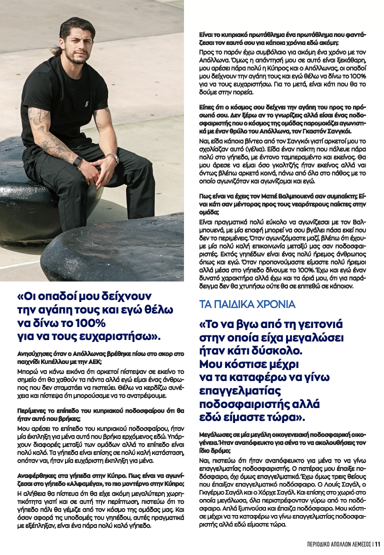 Στο περιοδικό του Απόλλωνα, παραχώρησε δηλώσεις ο ακραίος επιθετικός της ομάδας, Άνχελο Σαγκάλ.