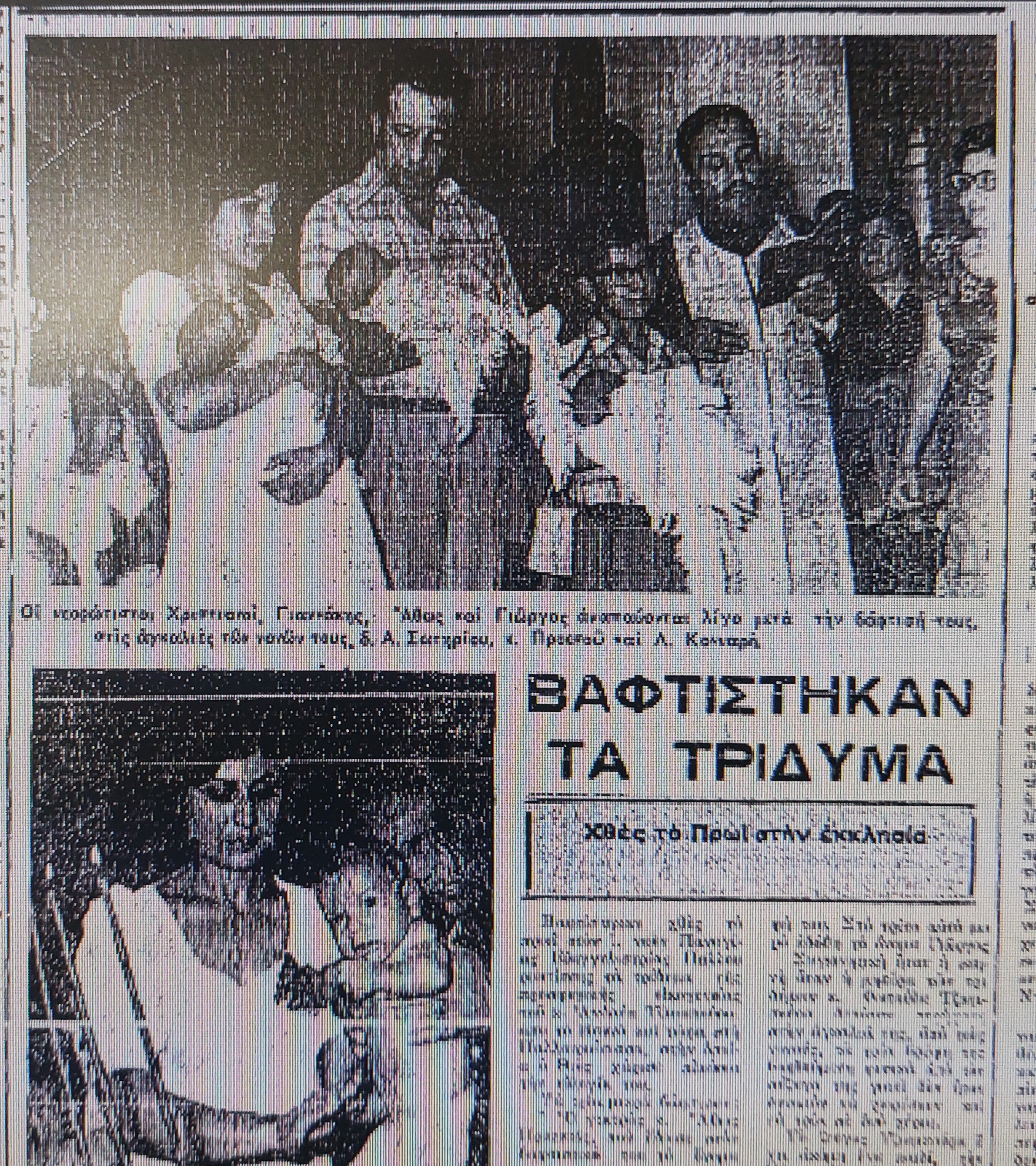 Πρωτοσέλιδα εκείνες τις ημέρες προβαλλόταν και η βάπτιση των τριδύμων παιδιών μιας οικογένειας προσφύγων από τη Νεάπολη Λευκωσίας και το Βουνό της επαρχίας Κερύνειας.
