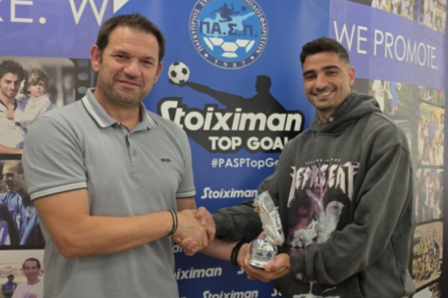 O Πάρης Ψάλτης παρέλαβε από τον ΠΑ.Σ.Π. το βραβείο Stoiximan Top Goal της 8ης αγωνιστικής του Cyprus League by Stoiximan 2025/26! Ο ποδοσφαιριστής του Εθνικού Άχνας, κατά τη βράβευση του, δήλωσε τα ακόλουθα: