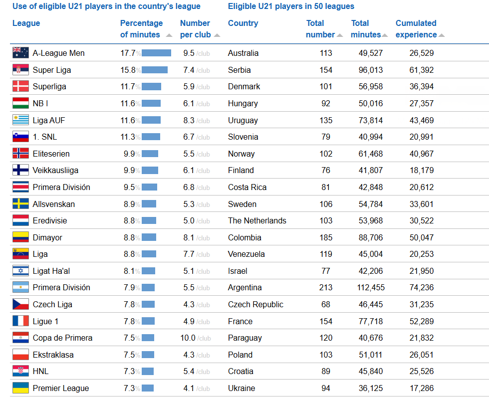 Η εικόνα αυτή έρχεται σε πλήρη αντίθεση με όσα ισχύουν σε άλλα ευρωπαϊκά πρωταθλήματα, όπου η επένδυση στη νεολαία αποτελεί βασικό πυλώνα ανάπτυξης. Χαρακτηριστικό παράδειγμα αποτελεί η Νόρτζελαντ, η οποία φτάνει να δίνει σχεδόν το 45% των αγωνιστικών λεπτών σε ποδοσφαιριστές κάτω των 21 ετών, χτίζοντας το μέλλον της μέσα από τις ακαδημίες και την ανάδειξη ταλέντων.