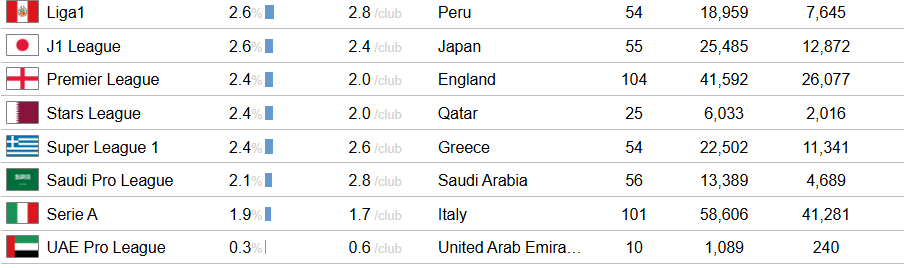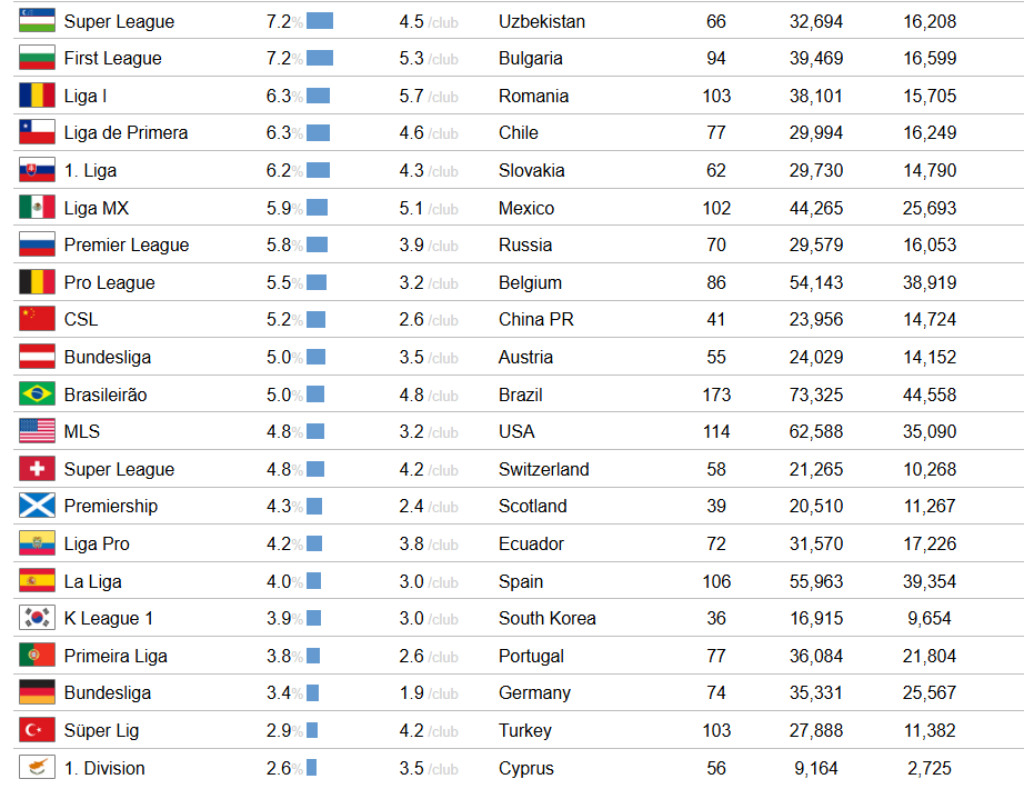 Μάλιστα στη λίστα με τα 50 καλύτερα πρωταθλήματα ανάπτυξης για νέους εγχώριους παίκτες η πρώτη κατηγορία του κυπριακού πρωταθλήματος βρίσκεται στην 42η θέση, ενώ το ελληνικό πρωτάθλημα στην 47η θέση.