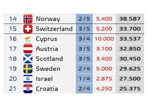 Μάχη στήθος με στήθος δίνουν Κύπρος και Ελβετία για την κατάληψη της προνομιούχας 15ης θέσης που δίνει 5ο ευρωπαϊκό εισιτήριο (2ο για το Τσάμπιονς Λιγκ), για τις διοργανώσεις της UEFA της σεζόν 2027-28.