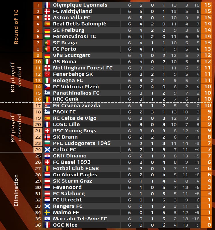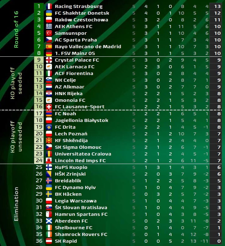 Η μάχη για την 15η θέση θα είναι... ελβετοκυπριακή! Στο Κόνφερενς, ΑΕΚ και Ομόνοια θα συνεχίσουν και μετά τη League Phase. Το έργο της Πάφου είναι αρκετά δύσκολο καθώς ίσως να μην αρκεί μια νίκη επί της Σλάβιας Πράγας για να προκριθεί στα νοκ άουτ του Τσάμπιονς Λιγκ (δες ΕΔΩ).