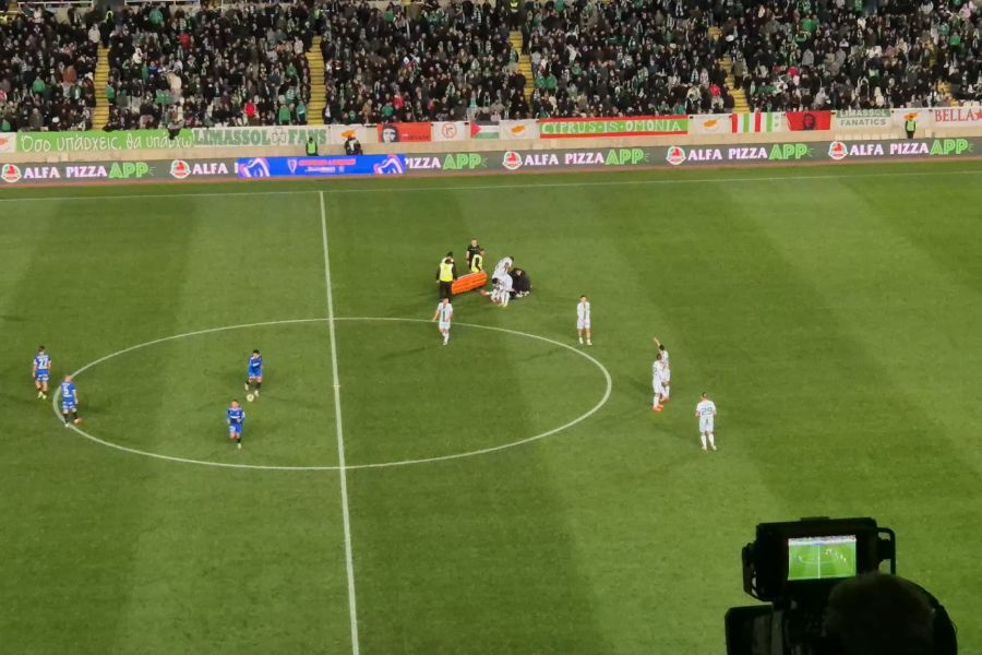 Αμέσως μετά την ισοφάριση της Ομόνοιας στο 40' με τον Τάνκοβιτς, ο Γιάννης Μασούρας έμεινε στο έδαφος.
