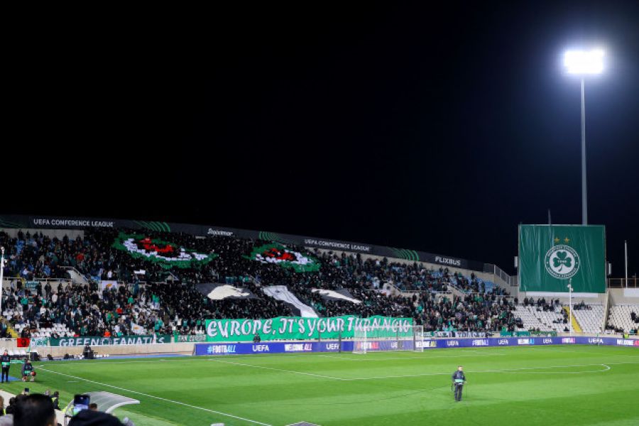 Εντυπωσιακό κορεό ετοίμασαν οι φίλοι της Ομόνοιας κατά την είσοδο του αγώνα κόντρα στη Ρίέκα, στο πλαίσιο του Κόνφερενς Λιγκ.