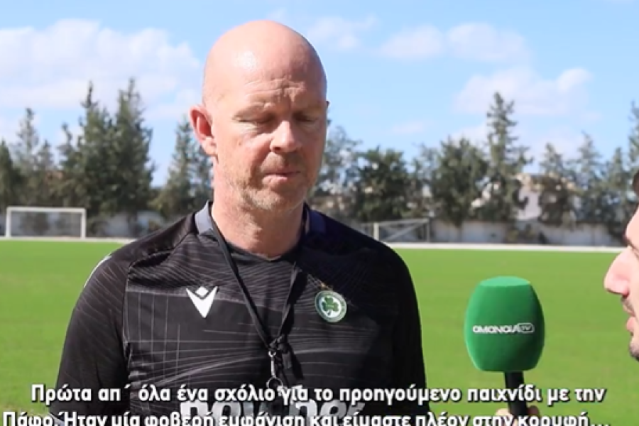 Μίλησε στην κάμερα της Ομόνοιας για το παιχνίδι με την ΕΝΠ ο προπονητής της ομάδας Χένινγκ Μπεργκ.