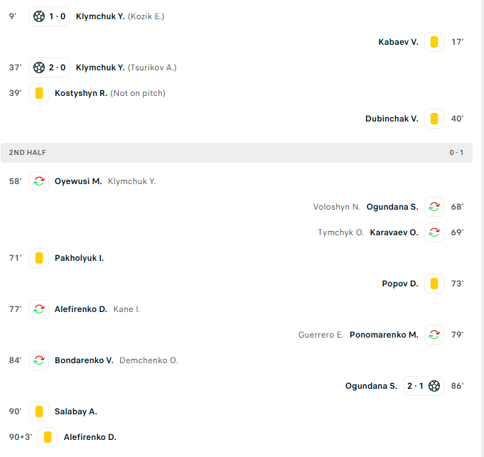 Η ομάδα της Ουκρανίας η οποία τεθεί αντιμέτωπη με τους Πράσινους την ερχόμενη Πέμπτη στο ΓΣΠ για την League Phase του Conference League, ηττήθηκε με 2-1 από την Κόλος Κοβαλίνκα για την 13η αγωνιστική του πρωταθλήματος.