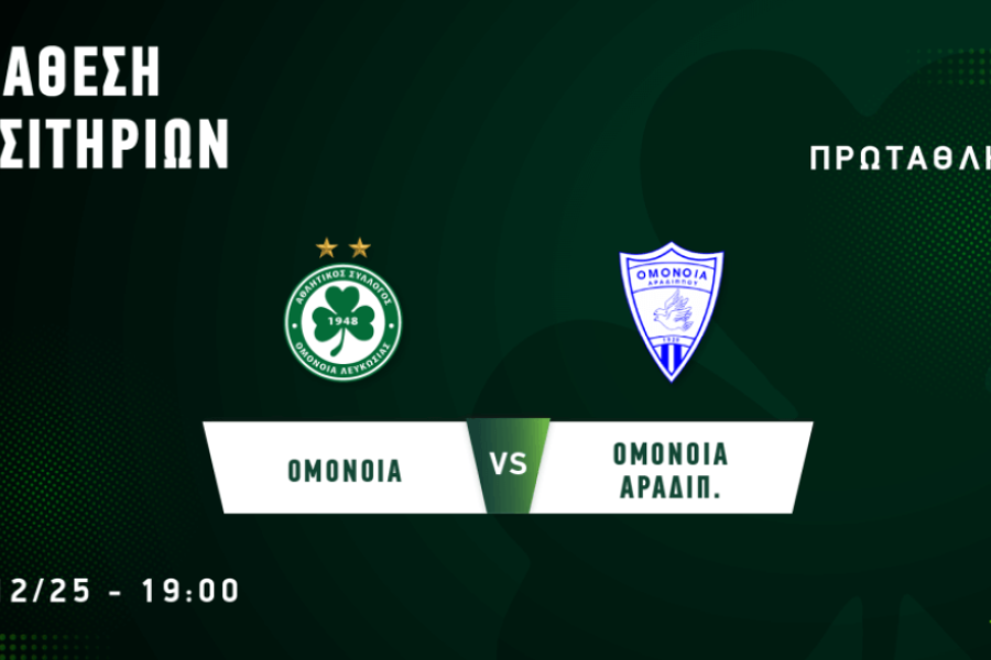 Η Ομόνοια ενημερώνει για τη διάθεση των εισιτηρίων του εντός έδρας αγώνα με την Ομόνοια Αραδίππου.