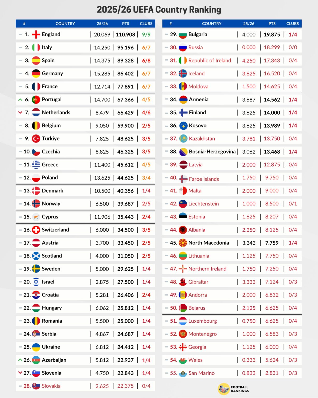 Πλέον με την Πάφο να βρίσκεται εκτός διεθνής σκηνής, το βάρος των ευρωπαϊκών υποχρεώσεων περνά αποκλειστικά σε Ομόνοια και ΑΕΚ, οι οποίοι συνεχίζουν την πορεία τους στο Conference League και καλούνται να ενισχύσουν ακόμη περισσότερο τη δυναμική της Κύπρου στον Ευρωπαϊκό χάρτη, σφραγίζοντας την εξαιρετικά προνομιούχα 15η θέση.