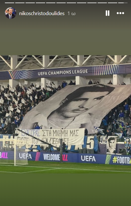 Μάλιστα έκανε και ανάρτηση από το πανό που ανέβασαν οι φίλοι της Πάφου για τον Ευαγόρα Παλληκαρίδη.