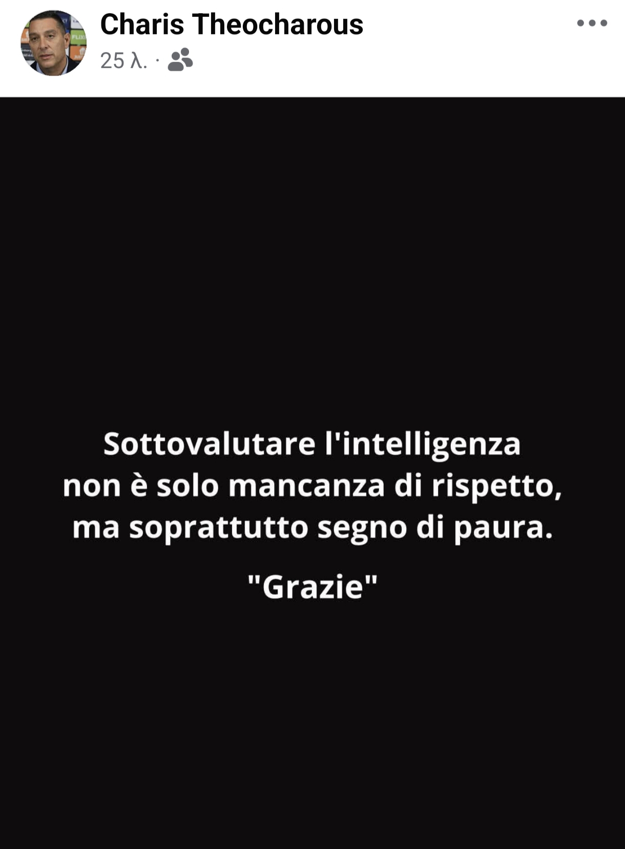 Ανάρτηση από τον Γενικό Διευθυντή της Πάφου, Χάρη Θεοχάρους στα ιταλικά.