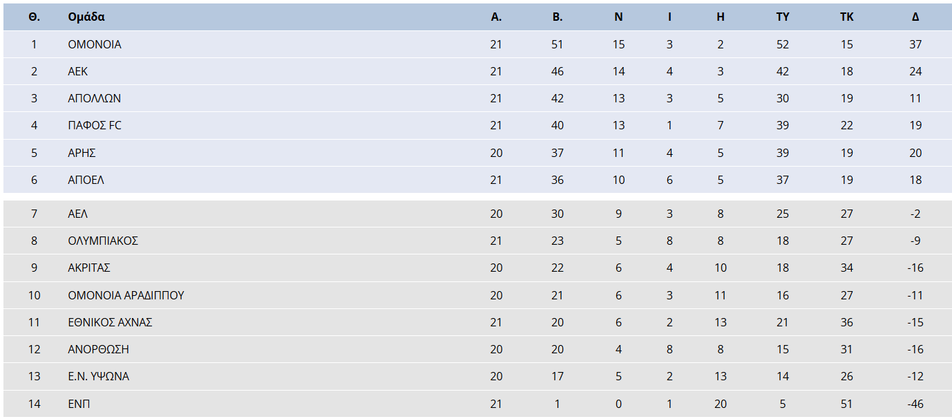 Ματσάρες είχαμε χθες στο πρωτάθλημα για την 21η αγωνιστική με τις ΑΕΚ, Ομόνοια και Απόλλωνα να παίρνουν σημαντικές νίκες επί ΑΠΟΕΛ, Πάφου και Ολυμπιακού αντίστοιχα.